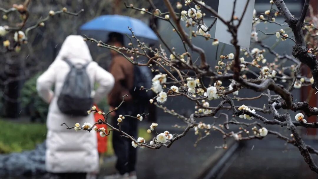 温馨提示,受本轮强冷空气影响,气温持续低位运行,近几日前往公园赏梅时请注意安全与保暖。