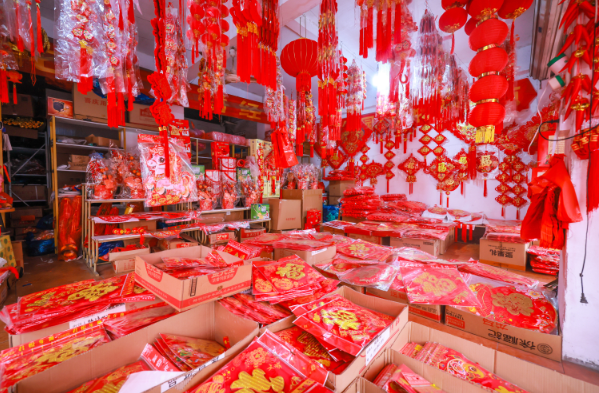 置办饰品迎马年,浦南市场年味浓