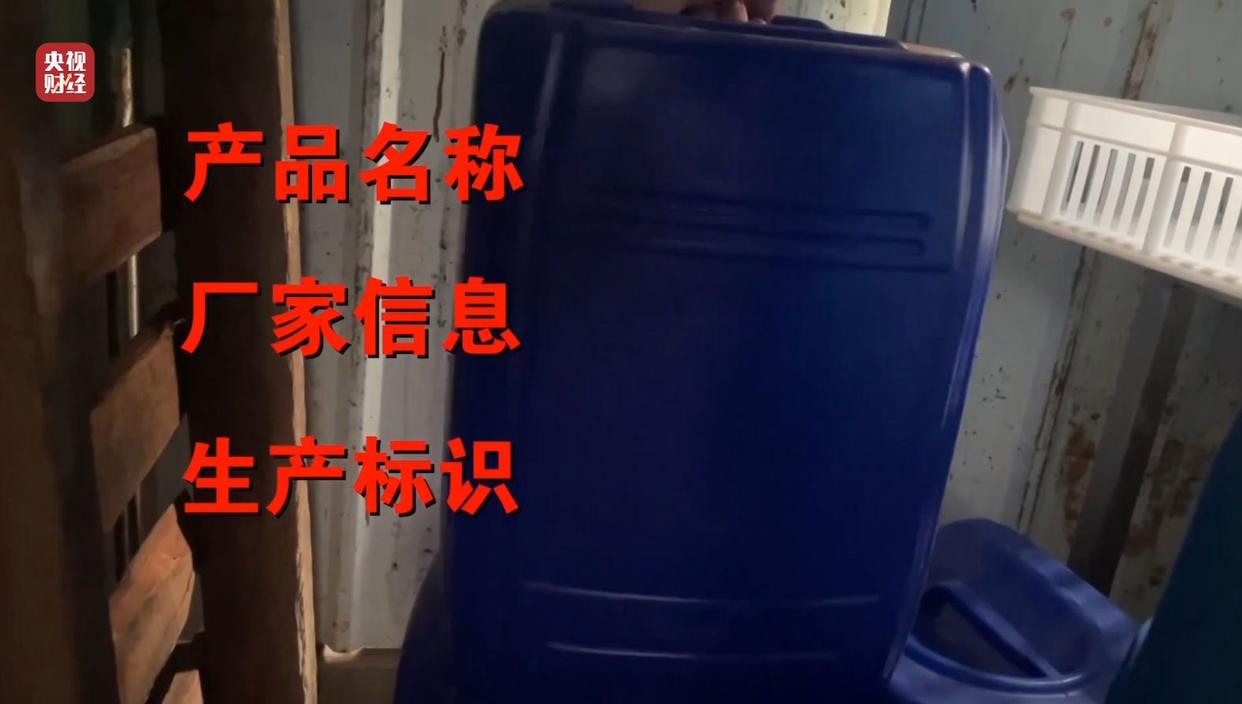 在现场,记者注意到一些桶身被贴上全新的标签。经过一番“包装”,本是用于“漂白”鸡爪的双氧水,竟摇身一变成“生活饮用水用过氧化氢消毒液”的产品。