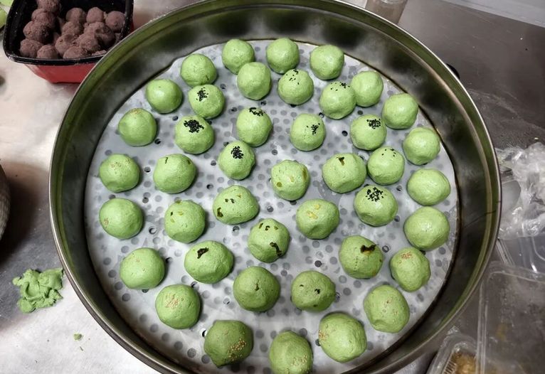 顾客邱女士表示:“以前这条街没有来过,这次就到这边来逛一逛,看到有青团就进来看看。花生芝麻馅的挺少见,咸菜笋丝馅的也不多,外面一般基本上都是芝麻馅和豆沙馅的居多,前几天芝麻馅的和咸蛋黄馅的都吃过了,这个倒是没吃过,就想过来尝一尝这个味道。”